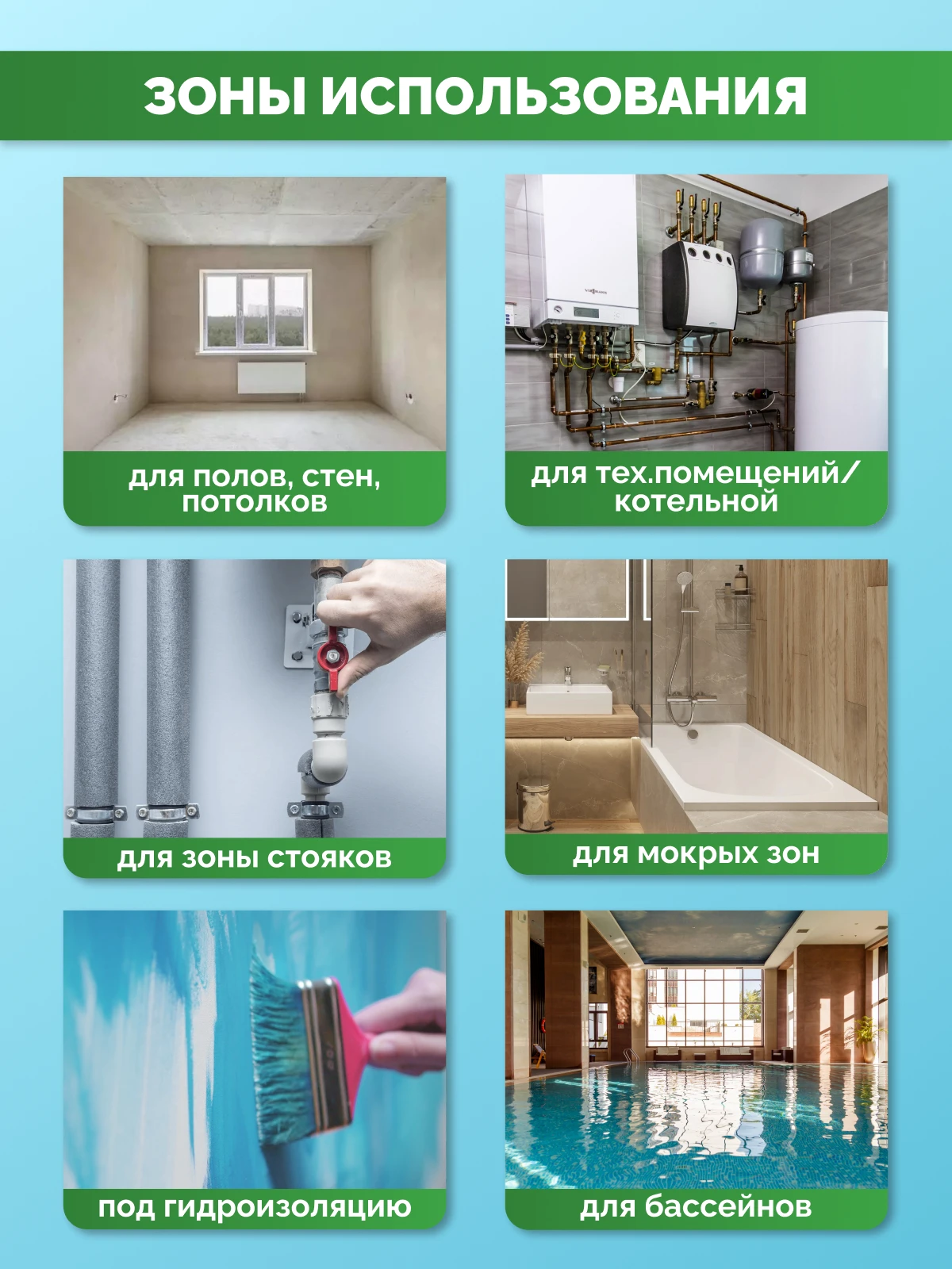 - Тип работ (Применимость)для внутренних и наружных работ