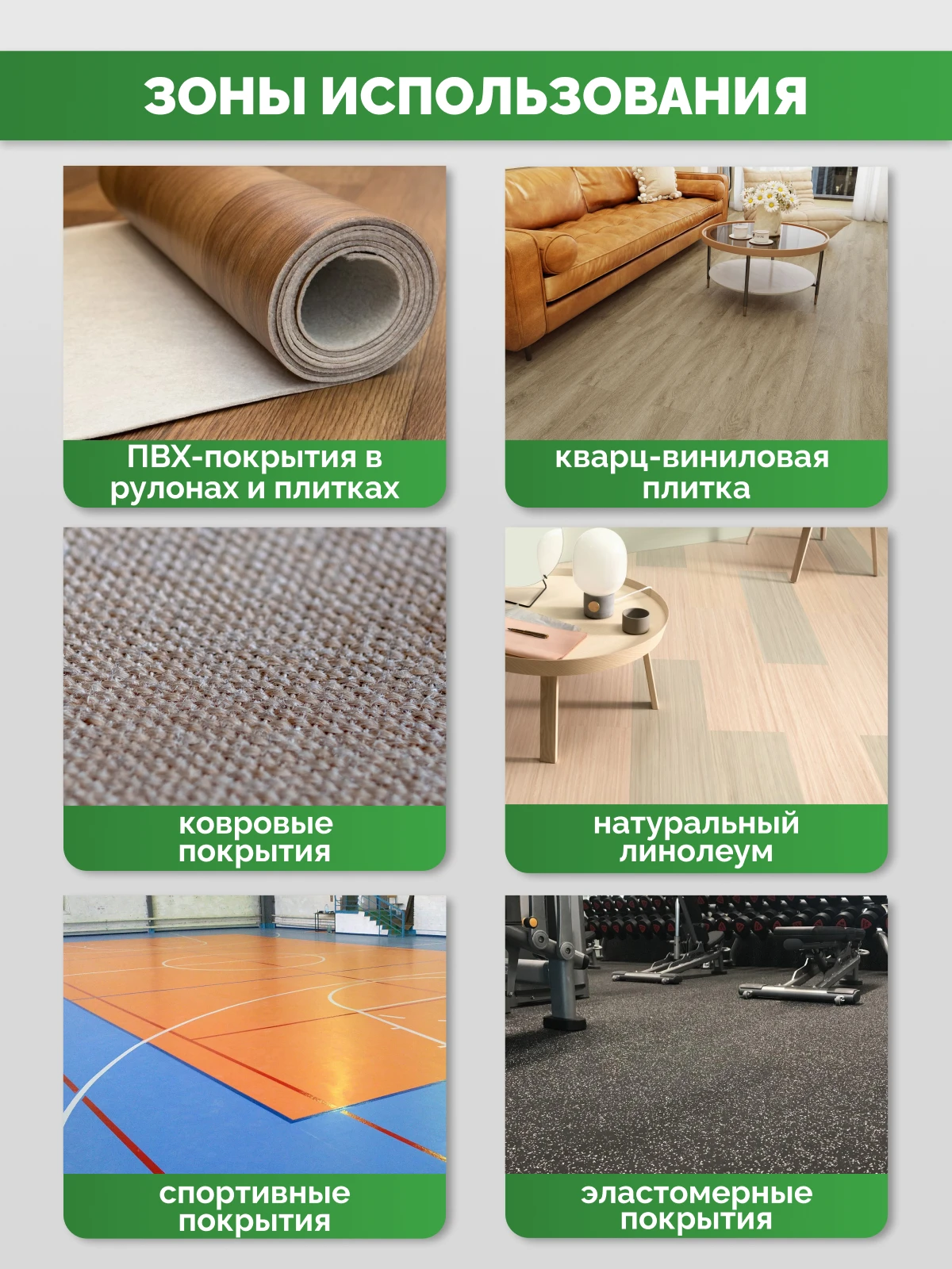 Коммерческие покрытия — отличаются повышенной износостойкостью и прочностью, выдерживают интенсивное использование в офисах, магазинах и общественных местах. У них усиленный защитный верхний слой, устойчивый к истиранию и влаге.