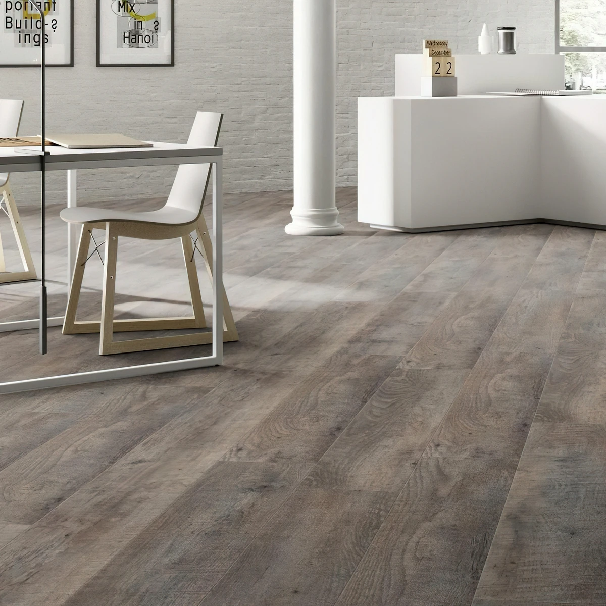 - белая кварцвиниловая плитка