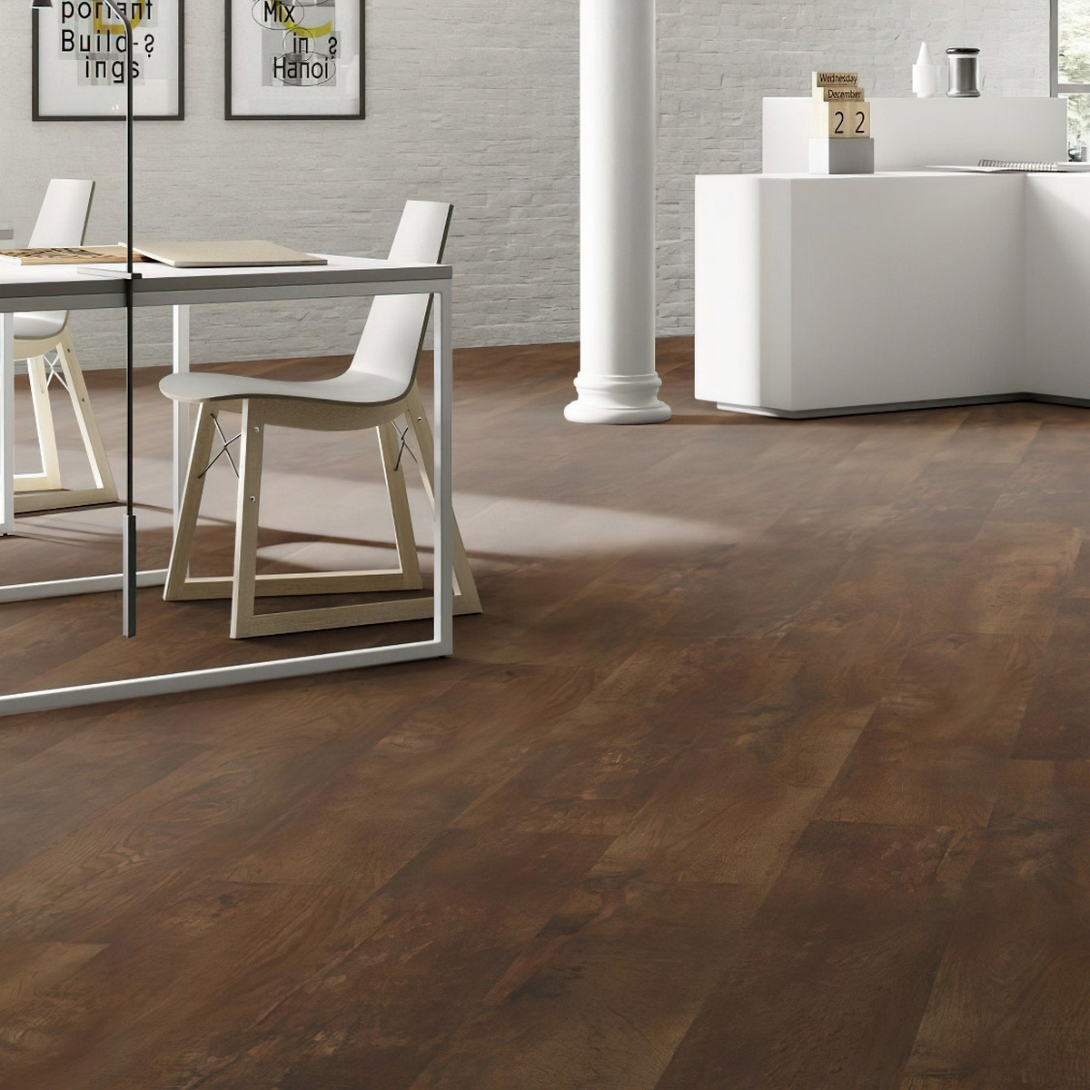 - белая кварцвиниловая плитка