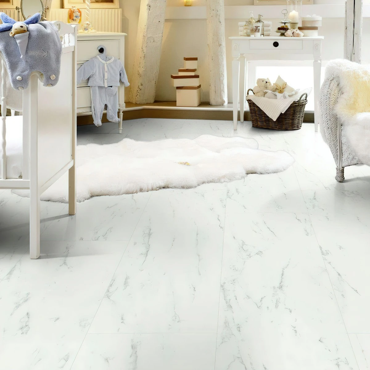- белая кварцвиниловая плитка