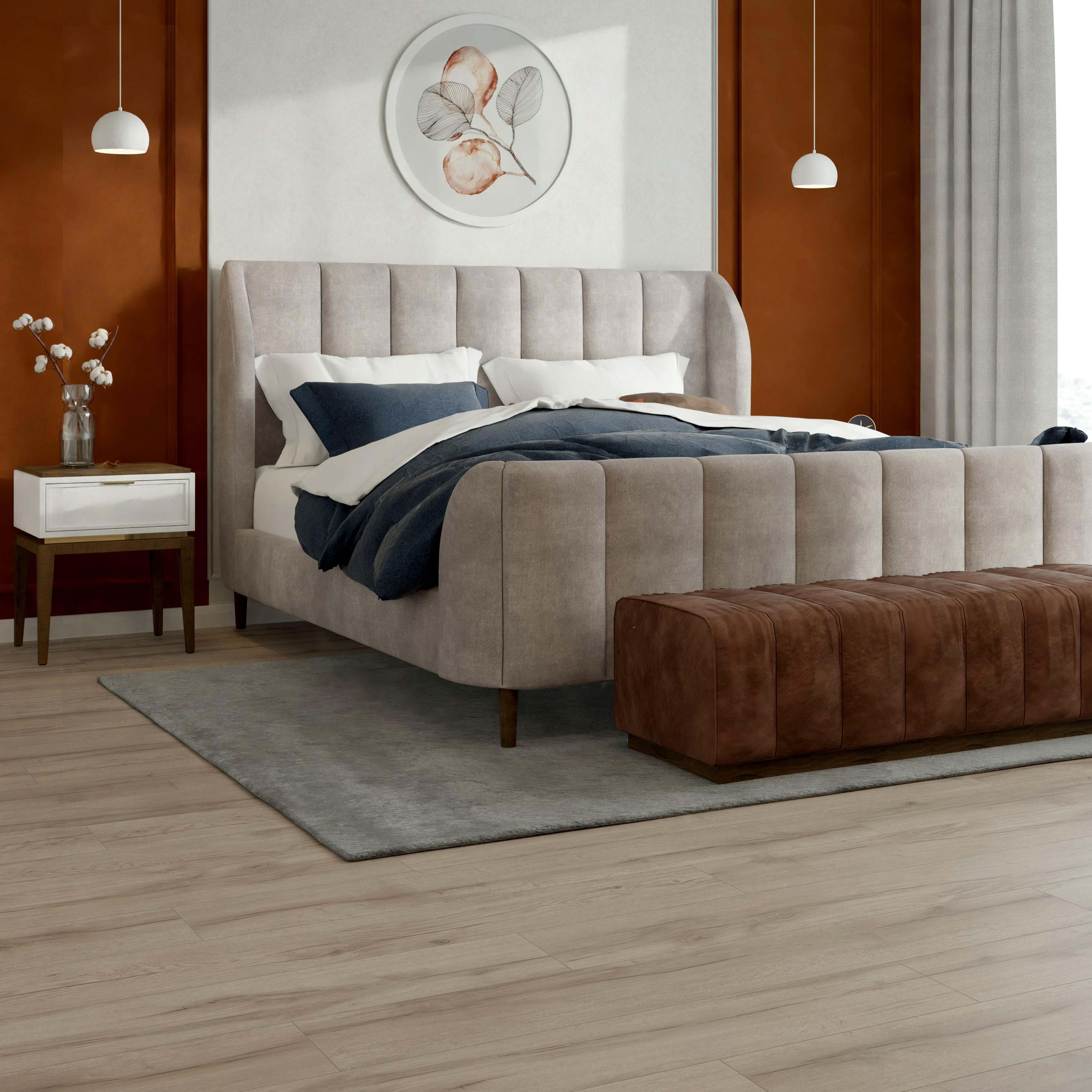 С фаской 4V: срез по всем четырём краям каждой панели создаёт V-образные канавки. Это придаёт покрытию натуральный вид доски и скрывает мелкие неровности основания. Подходит для помещений с интенсивным использованием.