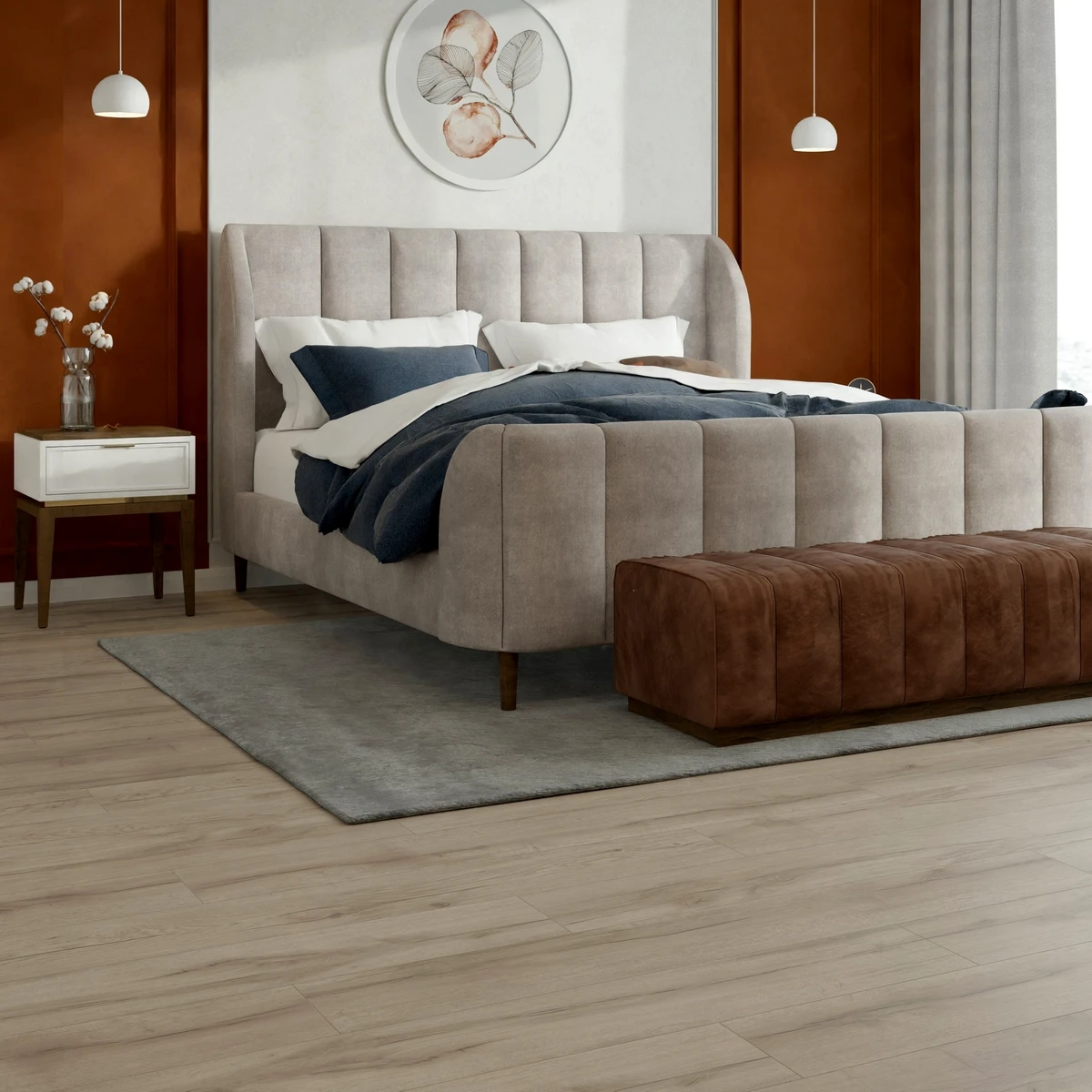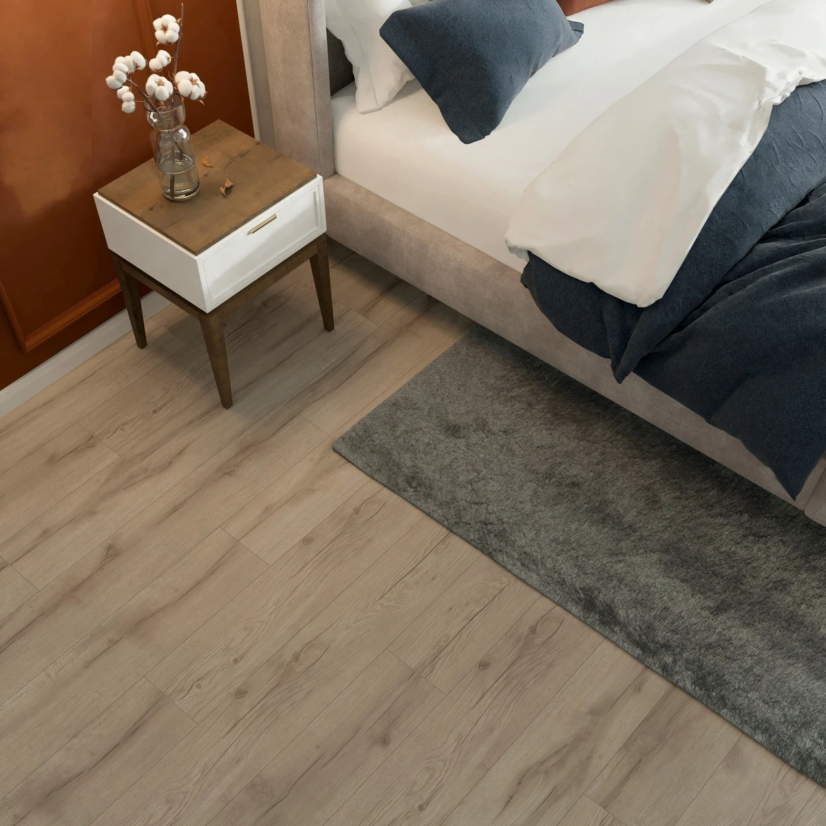 С фаской 4V: срез по всем четырём краям каждой панели создаёт V-образные канавки. Это придаёт покрытию натуральный вид доски и скрывает мелкие неровности основания. Подходит для помещений с интенсивным использованием.