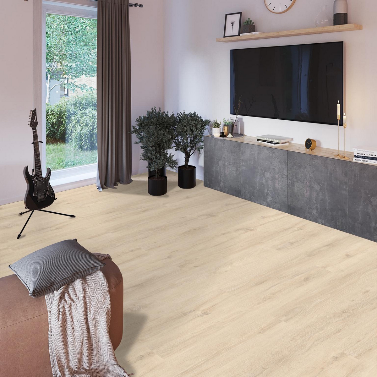 С фаской 4V: срез по всем четырём краям каждой панели создаёт V-образные канавки. Это придаёт покрытию натуральный вид доски и скрывает мелкие неровности основания. Подходит для помещений с интенсивным использованием.