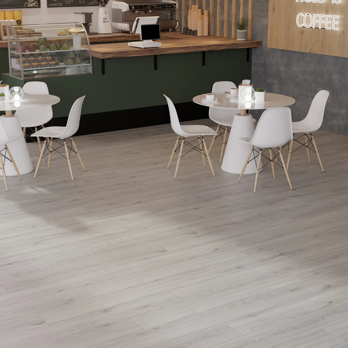С фаской 4V: срез по всем четырём краям каждой панели создаёт V-образные канавки. Это придаёт покрытию натуральный вид доски и скрывает мелкие неровности основания. Подходит для помещений с интенсивным использованием.