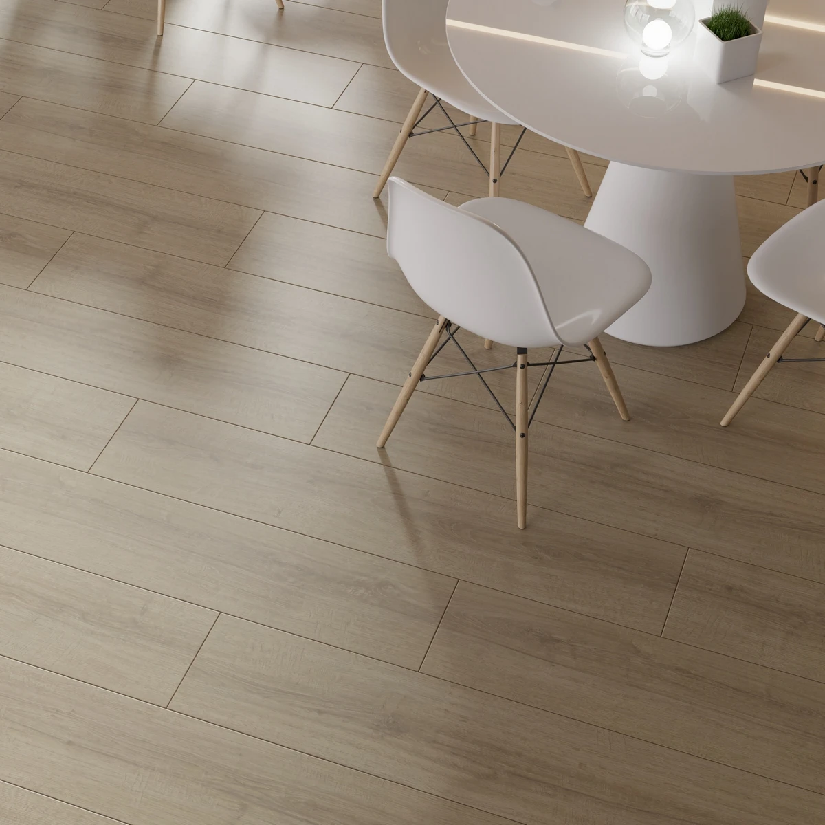 С фаской 4V: срез по всем четырём краям каждой панели создаёт V-образные канавки. Это придаёт покрытию натуральный вид доски и скрывает мелкие неровности основания. Подходит для помещений с интенсивным использованием.