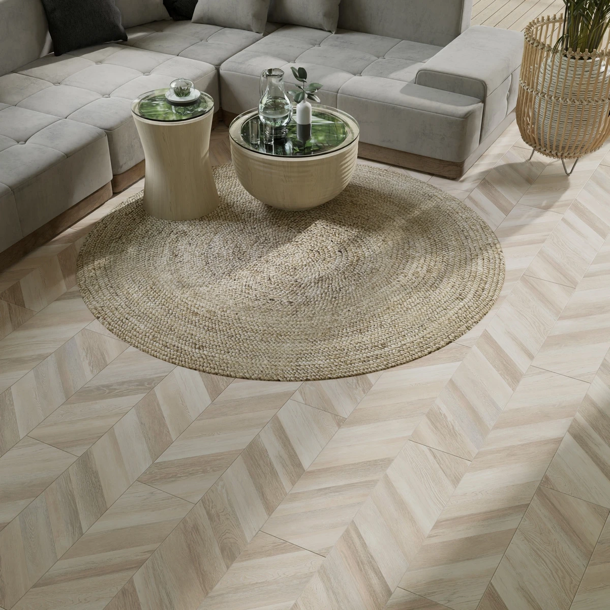 С фаской 4V: срез по всем четырём краям каждой панели создаёт V-образные канавки. Это придаёт покрытию натуральный вид доски и скрывает мелкие неровности основания. Подходит для помещений с интенсивным использованием.