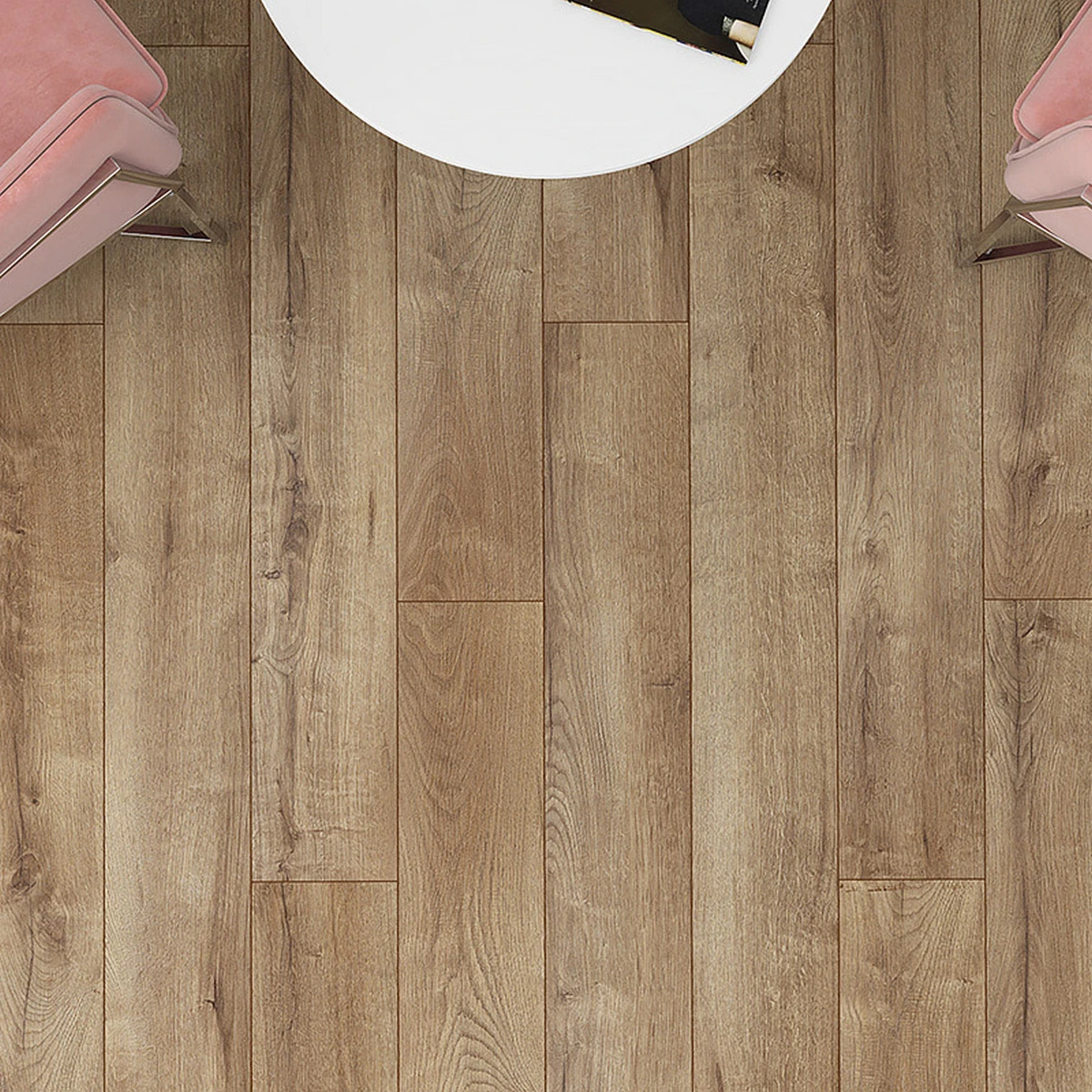 С фаской 4V: срез по всем четырём краям каждой панели создаёт V-образные канавки. Это придаёт покрытию натуральный вид доски и скрывает мелкие неровности основания. Подходит для помещений с интенсивным использованием.
