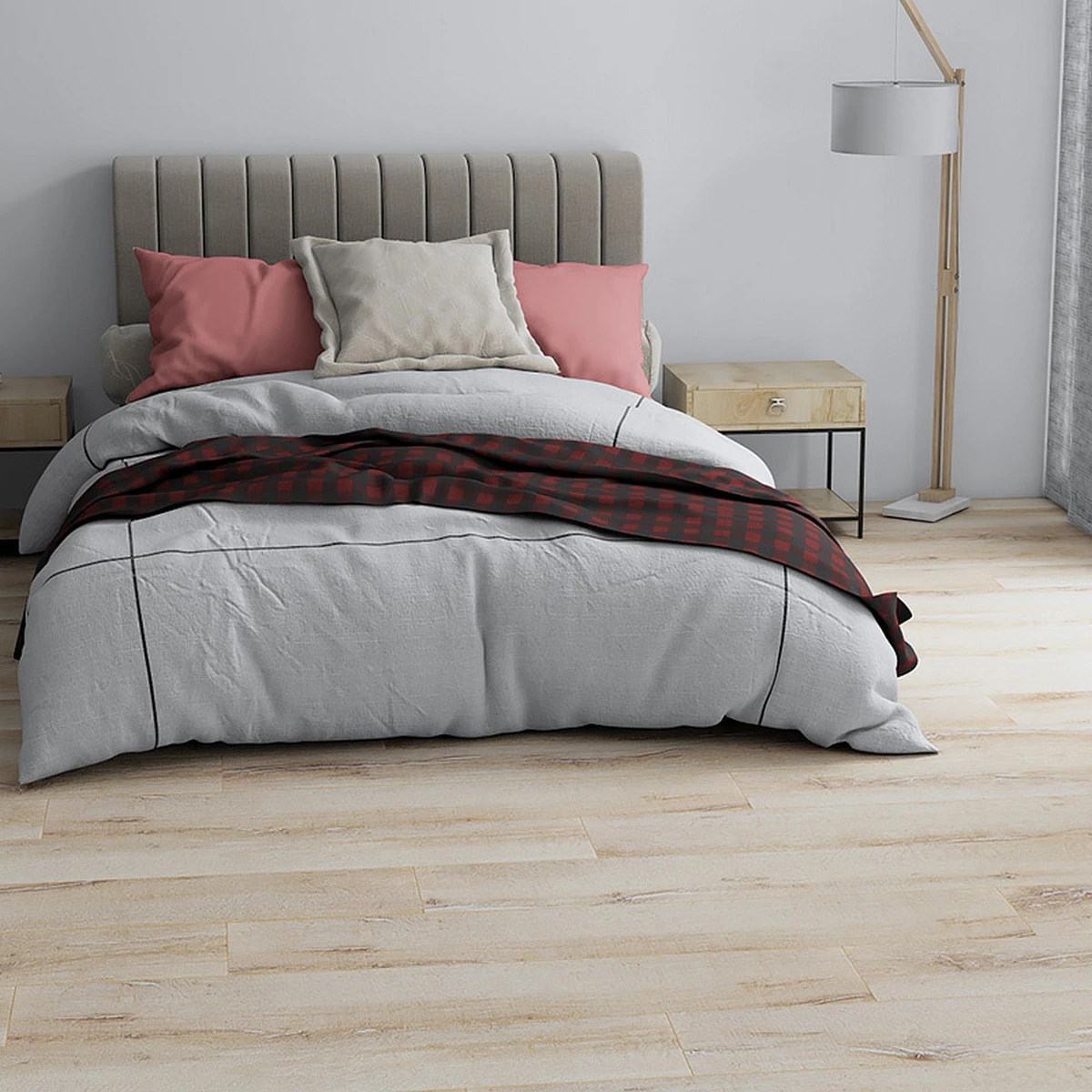 Без фаски: панели плотно прилегают друг к другу, создавая ровную поверхность без видимых швов. Идеально подходит для современных интерьеров, придавая полу однородный вид.