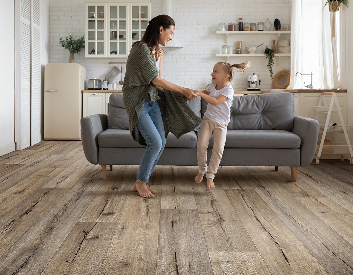 Влагостойкие покрытия не деформируются при контакте с водой, а благодаря защитному слою удерживают влагу на поверхности. Лучше всего с этой задачей справляются виниловые напольные покрытия. Влагостойкие напольные покрытия нужны для кухонь, ванных комнат и прихожих, для обчных помещений они также прекрасно подойдут.