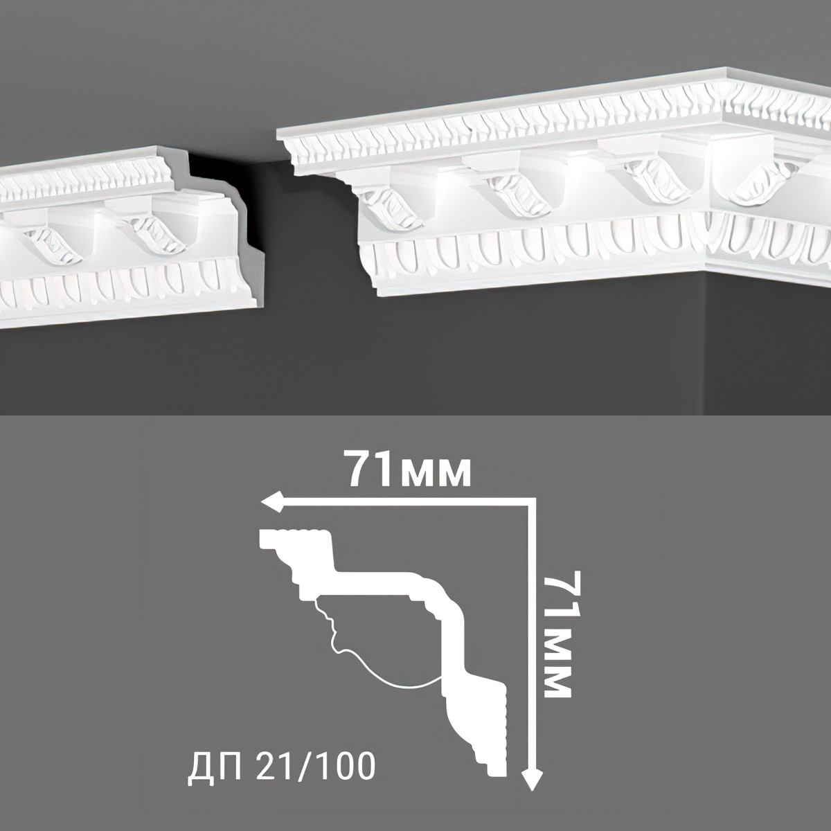 00-00001079 Плинтус потолочный Де-Багет ДП21/100 (2000*71*71 мм)
