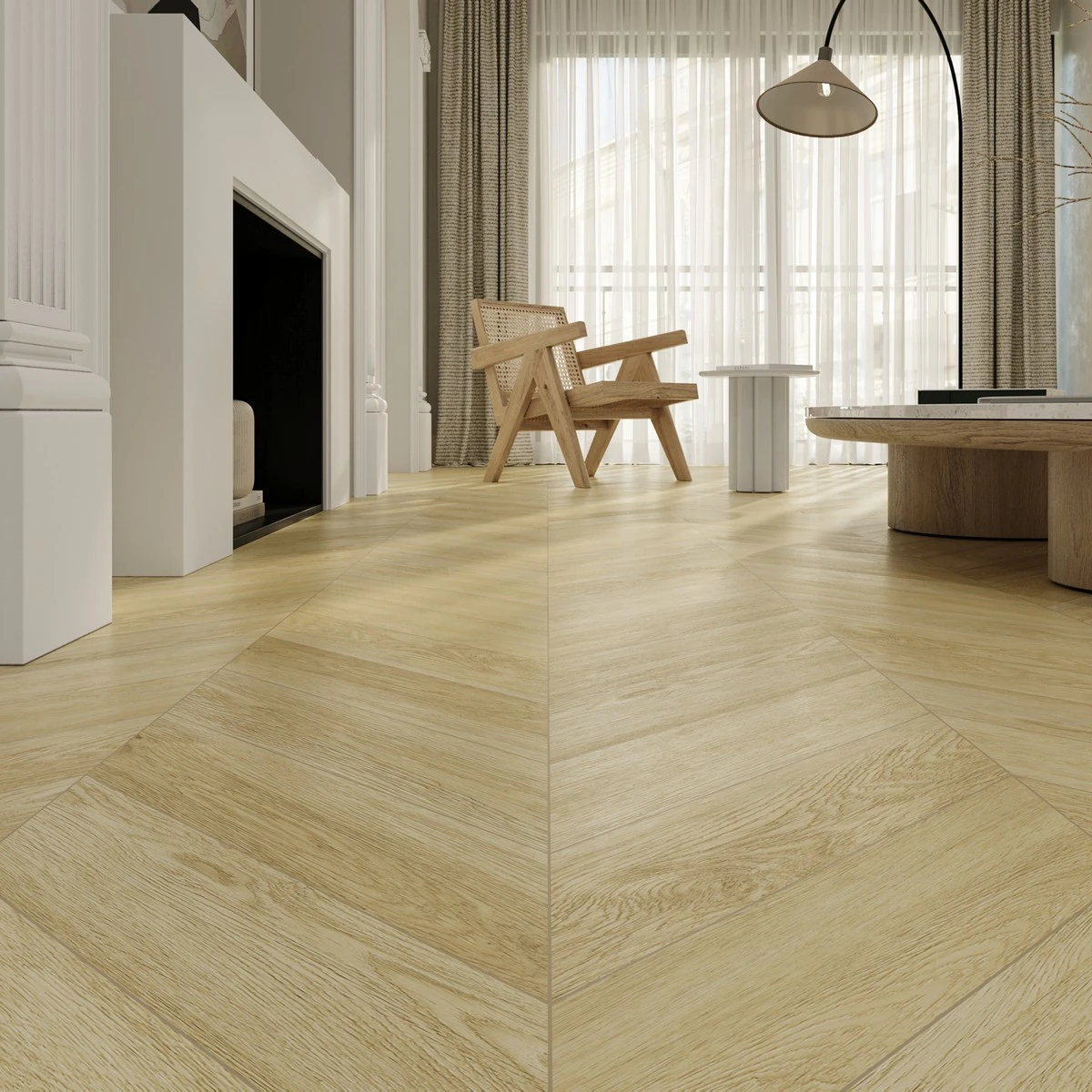 С фаской 4V: срез по всем четырём краям каждой панели создаёт V-образные канавки. Это придаёт покрытию натуральный вид доски и скрывает мелкие неровности основания. Подходит для помещений с интенсивным использованием.