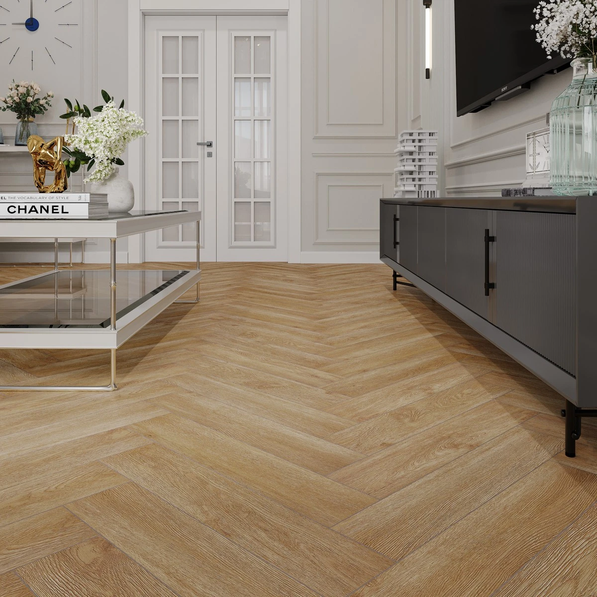 С фаской 4V: срез по всем четырём краям каждой панели создаёт V-образные канавки. Это придаёт покрытию натуральный вид доски и скрывает мелкие неровности основания. Подходит для помещений с интенсивным использованием.